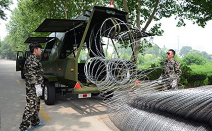 刀刺布障车,又称防暴车,是一种新型的障碍布防设备。用于暴乱、维稳、边境及战地和道路隔离等。能快速布防1.75米高刺网隔离带,誉为:没有子弹的防护墙!