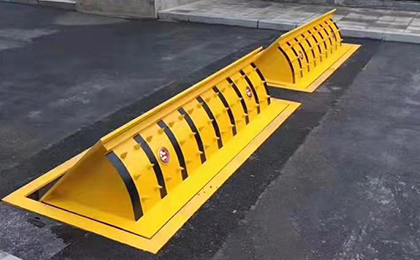 路障机(又名反恐墙)。按防护性能可分为双面防撞路障机和单面防撞路障机。均以液压能为动力实现翻转体的升降功能。